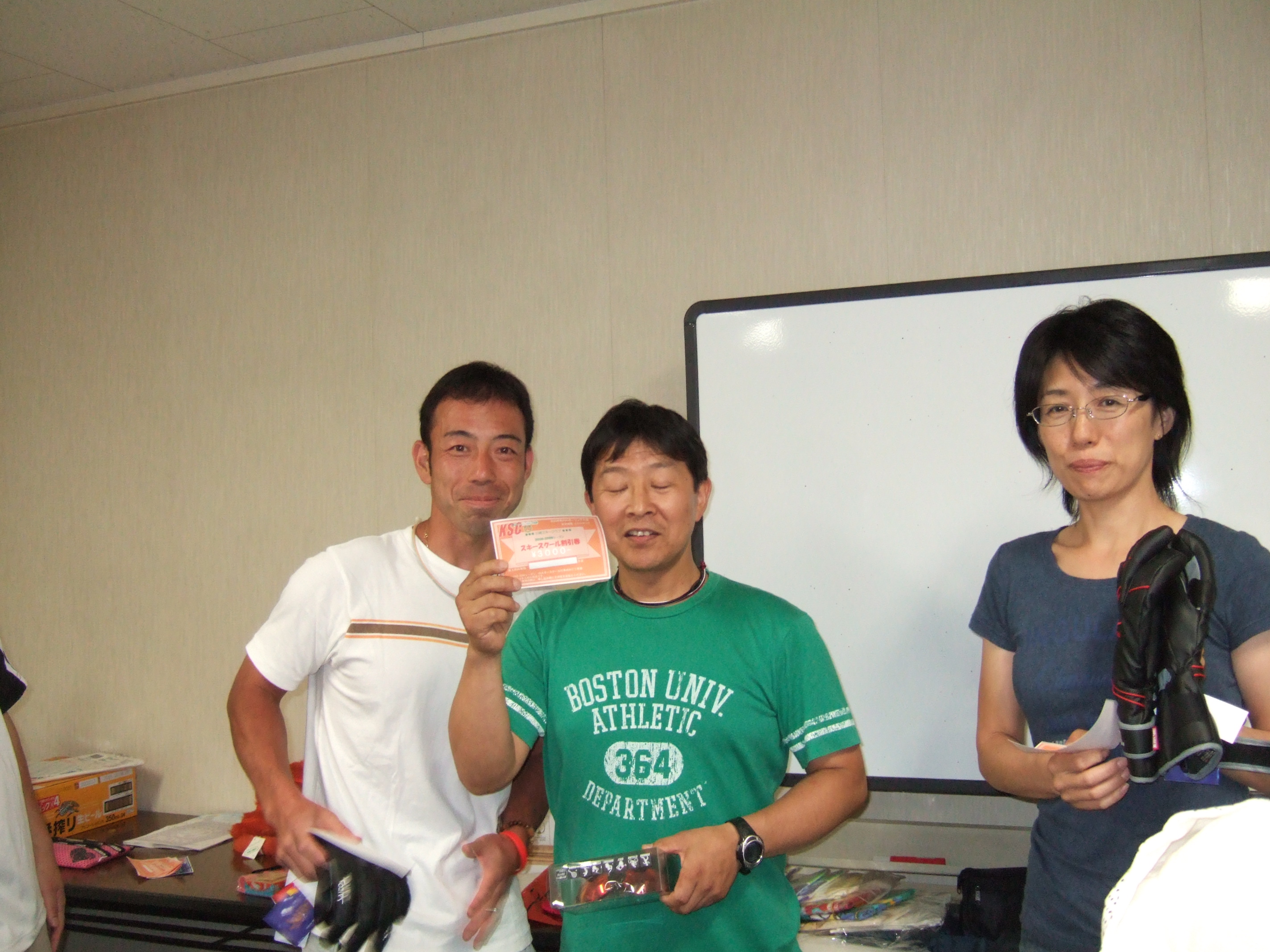 恒例、ボーリング大会は猛暑の中、川崎グランドボウルで開催されました。 募集人数を越える参加者が集り、大変盛り上がりました。 新人の坪松先生の司会で、まず山内会長の挨拶、そして始球式からスタートです。 山内コールのなか、すばらしいフォームで投球。 去年は駐車場で愛車をぶつけたショックでいまいち冴えのない投球でしたが今年は!? ……なんかたくさんピンが残ってるんですけど(笑) まぁ、それはともかく、各レーンに別れてゲームの開始です。 好調な方も不調な方もいつもどおりの方も色々のようでしたが、あっという間の2ゲームでした。 ゲームが終わったらお楽しみの表彰式です。 配達で頼んだ冷たい飲み物を片手に発表を待ちます。 優勝は2年連続の村石先生でした。 2位は新堀佳寿子さん 3位は池尻博之さんでした。 上位3名の他、トビ賞でスクール割引券が副賞として贈られました。 優勝を含め、先生に当ってしまった場合はジャンケン大会で他の人に譲られました。 そのほか、プライベートレッスン券もジャンケン大会で配布されました。 獲得したみなさん、是非スクールに参加してご活用くださいね。 色々な方から景品のご寄付を頂いたので、景品は豊富で、全員に何かが贈られました。 最近では全員に景品が渡る行事は、このボーリング大会くらいです。 スクール割引券もこの行事でのみ配布されます。 上位が狙えない方でも獲得のチャンスは充分ありますので、スクール常連の方は是非ご参加いただきたい行事です。 ただ、この行事は、総会から日がないため、会員以外の方にお知らせする手段があまりないんです。 参加してみたいっっ、と思われている方は、シーズン中からアピールしていただければ日程をお知らせしますので、よろしくお願いします。 またホームページでもお知らせいたしますので、7月頭に、是非チェックしてみてください。 みなさまのご参加をお待ちしています。 (記:EMI) |