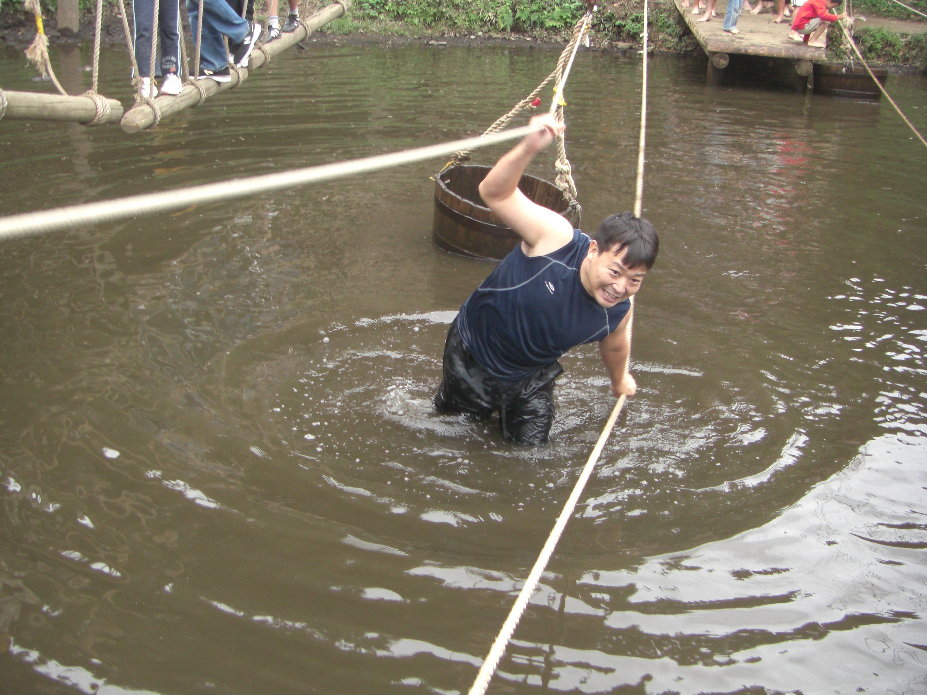 皆さんこんにちは。KSC畠山です。 今回会場となったのはフィールドアスレチック 横浜つくし野コース。 川崎から近いこともあり、KSC行事以前に利用された方も多かったと思います。 行事参加者は大人男性30名、大人女性10名、中高生4名、小学生/幼児7名、3歳未満4名、合計55名。 お天気は曇りと、心配された雨も回避。 たくさんの方々に参加いただきました。 おおおー(喜) 当日、1時間早めにつくし野駅に来たつもりが・・・サブ担当の宮田さんが早くも駅でくつろいでいる。 すでに会場と1往復して下見したらしい。 なんと心強いことでしょう。 宮田さんと軽く打ち合わせ後、会場へ到着するとここにも駐車場で待つ人が数人。 この気合はBBQ、それともアスレチックですか? くれぐれも飲酒運転はしないでくださいね。 さて、皆様時間どおりに集合していただいたところで会長より、挨拶いただきました。 皆さん、怪我はしないで下さいねー。 と心で願いつつ、BBQの準備をしていると速報。 早くも水没者発生との事。着替えは準備してますカー? さて、お待ちかね。BBQの時間となりました。 ところが、アスレチックに熱中しすぎて帰ってこれなくなった大人が続出。 大人も童心に戻って楽しんでいただけたようです。 乾杯を前にとりあえず空腹を満たすことになりました。 当日仲良くなった方、以前からの友人など、皆さん思い思いの仲間(10名程度)で鉄板を囲みおいしい焼肉を食していました。 結構盛り上がってきたところで全員そろい、名誉会長の発声で乾杯。 担当もたまらず飛び込み、皆さんのテーブルを渡り歩いておいしい思いをさせていただきますぞー。 ではなく、皆さんが楽しんでいる状況を観察させていただきました。 そしてご馳走様でした。(やっぱり食べました) その後は食材が尽きるまで続き、最後は恒例のシーハイルで締め。 何とか大きなけが人も無く、終了することができました。 (後日談で、その後水没どころか水泳したツワモノがいたとか・・・風邪にはご用心) 指導員になり、KSC行事担当として初仕事となりました。 自分の力不足と緊張を感じながらも皆様の協力とご指導をいただき、無事に終えることができました。 ありがとうございました。 ◆その他の写真 【入り口で説明中】 【昇るぜっ】 【メタボ対策?】 【やっぱりコンプしたい】 【仲間が集ると楽しいね】 |