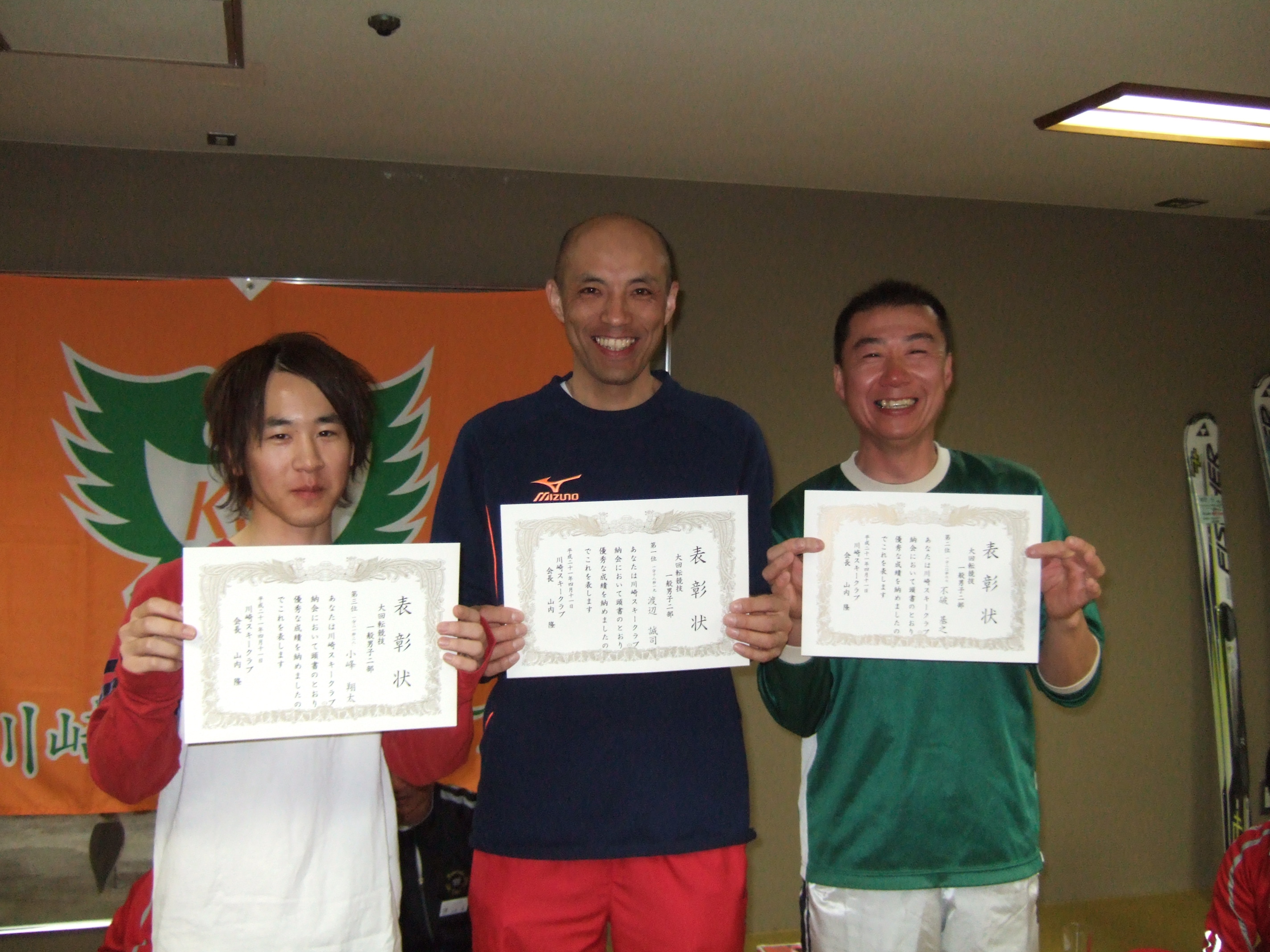 4月10日(金) 夜八時ぐらいに川崎のバス集合場所に到着するとすでに何人かの参加者さんが待機している! 皆さんさすがです! 僕は東京のお客さんを迎えにk先生と一緒に一足先に東京駅の集合場所に行ったのですが、川崎組は一人も遅れはなく円滑に出発できたそうです。 勿論東京組みも無事合流でき、スムーズに志賀高原熊の湯の一望閣に出発できました! 参加者の皆さんに感謝です。 宿に着いたのは夜中の1時半頃。それぞれバスの疲れを癒しに温泉に入るのもよし、すぐに布団に入って寝るのもよし、ちなみに僕は後者でした。 年のわりには睡眠時間をたっぷり取らないとだめな男なんです。 おやすみなさい.... 4月11日(土) 朝から快晴!本当に雲一つない快晴です。事前に天気予報を調べていたのですがスキー場の気温でも昼間は15℃〜17℃の予報でした。 今日は納会のメインイベント「GSL大会」!! 昨日バスの中でも話しましたがポールは気合と根性で何秒も速くなります。 バスでアドバイスしたせいか皆さん気合入ってましたね〜! 見ていてすごくよかったです。 ![]() 【快晴(すごく眩しい開会式)】 ![]() 【スタート決まってるぅ♪】 ![]() 【順番待ち)】 【あ…こけた(-_-;)】 さて内容はと言うと、バーンは気温の高さで多少荒れましたが想定の範囲内です。 (T先生によると去年の荒れかたはこんなもんじゃなかったらしいです) カテゴリー別に一般女子、指導員女子、一般男子、指導員男子の順で滑りました。 どのクラスもあの人には負けたくない、この人には絶対勝つというライバル意識が芽生えていましたが、特にヒートアップしていたのは指導員男子達でしょう! ある先生は僕の弟の赤いワンピーを華麗に着こなし気合十分でした(笑) 【やっぱり形から入らないとね(左端赤ワンピ)結果は…!?】 多少の転倒者などもいましたが大きな事故もなくスムーズな大会運営ができたと思います。 協力くださった指導員の方、参加者の方ありがとうございました。 夕方は皆さん温泉に入り疲れを癒したと思います。 ここの温泉は色といい匂いといいまさに温泉!と言える最高のお風呂でした。 夜はまちにまった親睦会での成績発表とビンゴ大会! 成績発表も盛り上がりましたね。 名前を呼ばれた瞬間、え!?私?という反応が多くてとてもよかったと思います。 入賞された方おめでとうございます! ![]() 【一般女子入賞者】 ![]() 【男子2部入賞者】 ![]() 【男子?部入賞者】 【指導員男子入賞者】 【特別賞の榎本賞をゲット】 僕はと言うと非常に恐縮ですが他の先生方をたてようと思っていましたが、いざポールに入ると血が騒いでしまい一本目はぶっちぎってしまいました。すいません(笑) ビンゴ大会はとても熱い景品がわんさかありましたね! ウエアーが当たった方よかったですね〜。 最後まで当たらなっかた方は残念ですがまた来年挑戦しましょう! そのほかにも飛び入りの景品でのジャンケン大会もあり皆さん本当に楽しまれたと思います。 4月12日(日) この日も快晴でした。 朝から暑いぐらいです。 予定としては午前中はフリースキーなので横手に行く方、熊の湯に行く方、何人かはスクールをなされていましたね。 ほとんどの方は横手山で滑られていました。 横手では焼きたてのパンが食べられるという情報を耳にしたので迷いましたが、僕は熊の湯でH先生とS先生と三人でこそ練してました。 皆さん満足気に帰ってきてくださりなによりでした! 時間どうりにバスに乗車でき、帰りは高速料金千円効果なのかかなり渋滞して時間がかかってしまいましたが全員無事に帰ってこれて一安心でした。 今年の納会も成功ですね! 参加者の皆様、指導員の先生方本当にお疲れ様でした。 来年も是非お待ちしております! 記 : あっくん.H@サブ担当 |