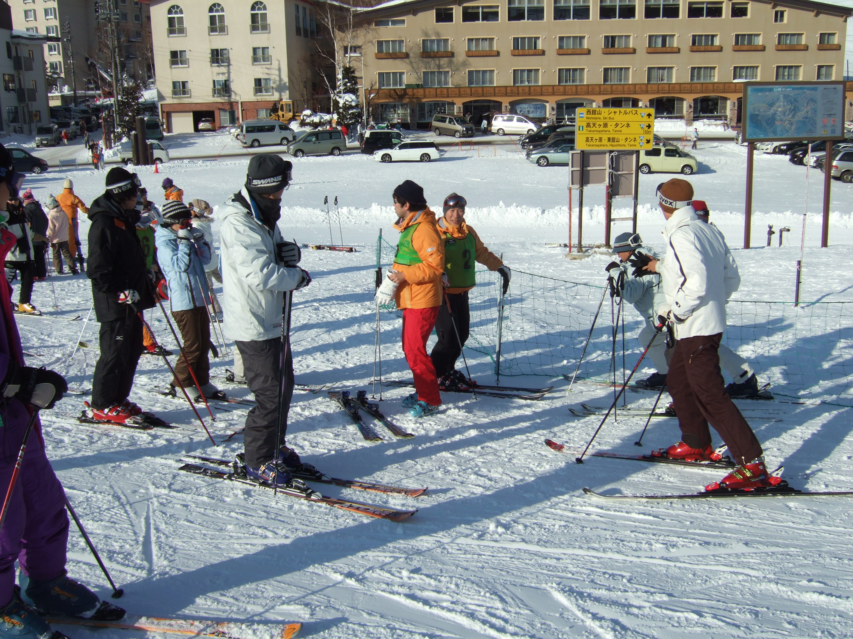 2008年12月30日(日)晴 午前9時開校式を高天ヶ原スキー場下で行い、その後、各班に分かれてスクール開始。 班はジュニアを含めて全部で8班。スキー検定で合格を目指す人、エンジョイ班で広い志賀高原を満喫する人、それぞれの目的に合わせた班でレッスンを 行いました。レッスンは、午前2時間、お昼をはさんで午後2時間。その間にビデオや集合写真の撮影もしました。これは、夕食後に行うミーティング で各自の滑りをチェックする時に使うものです。今回は、僕が担当しました。志賀高原は広く、どこにどの班がいるのか分からないので、今回は、出張撮影 なしで高天ヶ原か一の瀬、ダイヤモンド限定で撮影させていただきました。おかげで取りこぼしもなく全員の撮影ができました。 夕飯後に昼間撮ったビデオで滑りのチェックをしました。自分の滑りを客観的に観るのは、いいものです。ビデオを見た後は、熱心に担当の先生に滑りに ついて質問する生徒さんの姿が見られました。この時、翌日行われる検定試験の受付もありました。