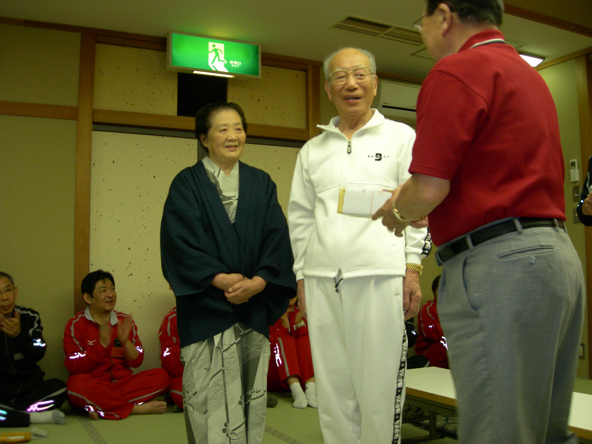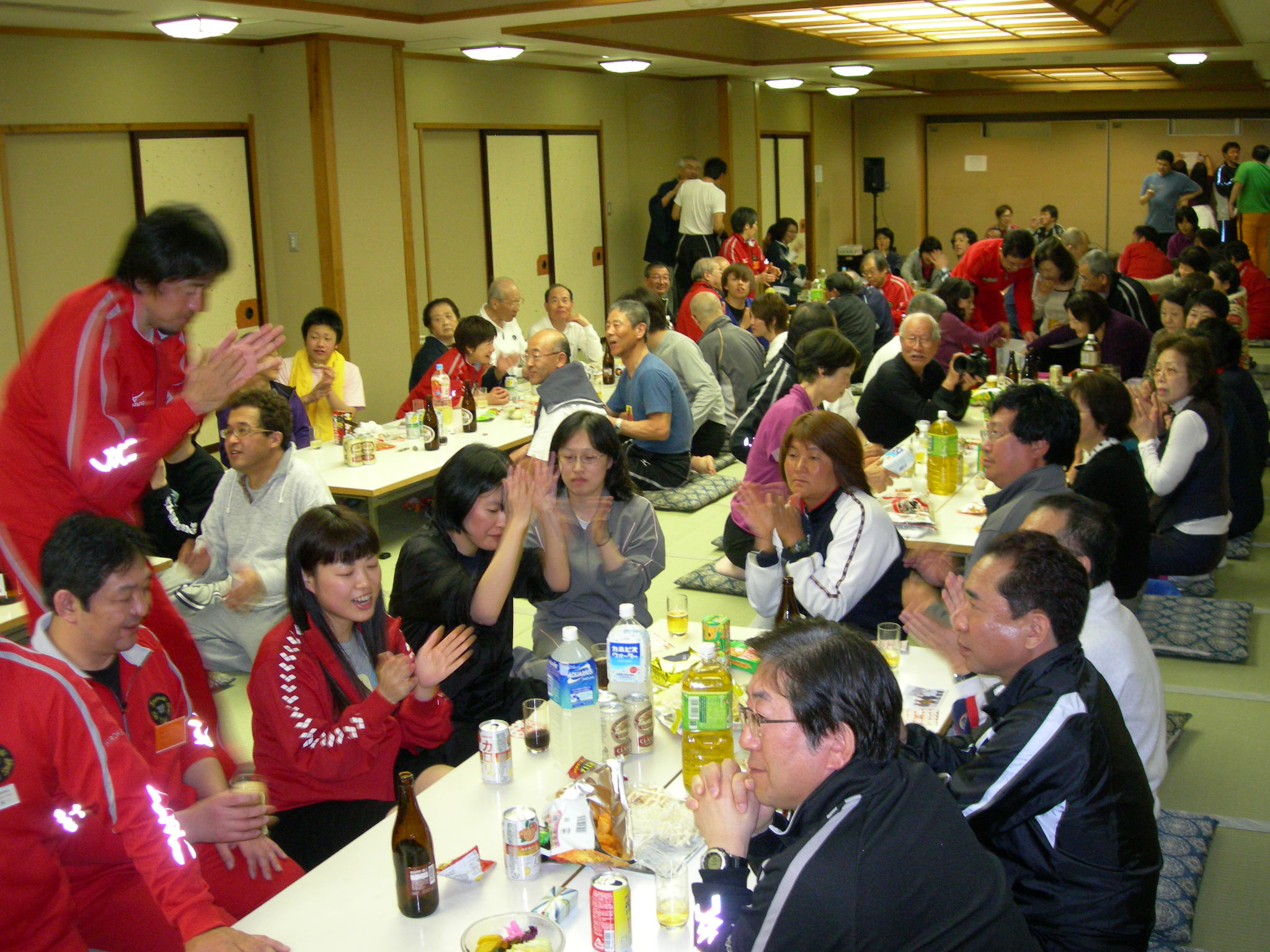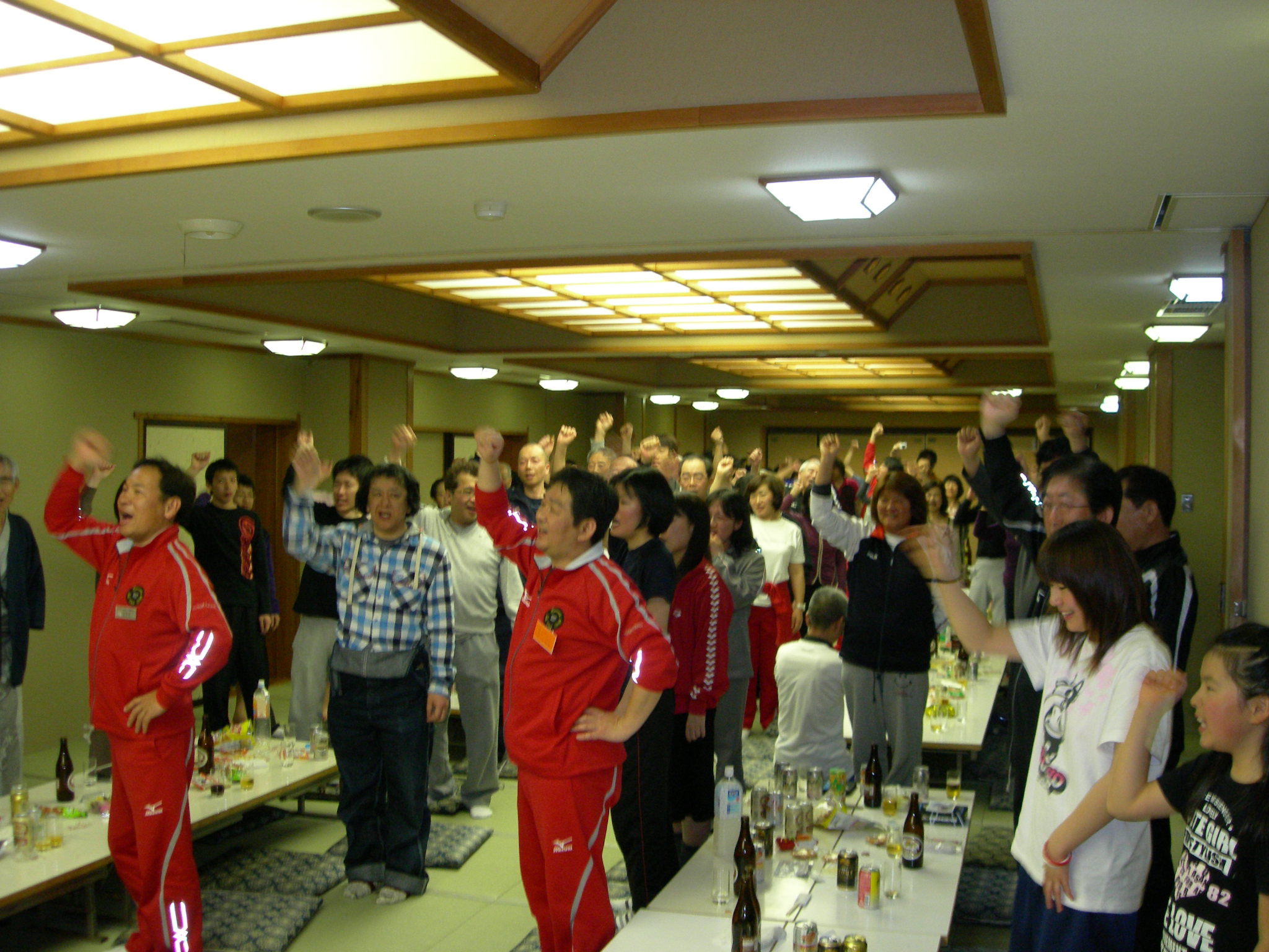 今回は会長も理事長も都合で参加できなかったんですが、楠本事業部長のもと、参加者全員で協力して納会を盛り上げようと、まずはポールセットからです。 入院中にもかかわらず、納会のために外出してきてくださって、ポールセットの指揮をとってくださった、笠谷先生、ありがとうございました。