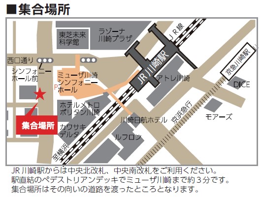 ①川崎駅集合場所(ミューザ川崎道路向かい側)